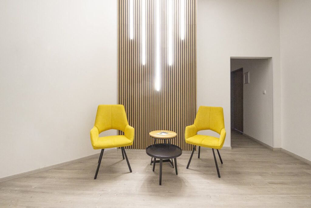 Stále vylepšujeme a zútulňujeme naše/vaše společné prostory, které můžete volně využívat vy i vaši zákazníci. Nově tak přibyl třeba tento „odpočinkový ostrůvek“.